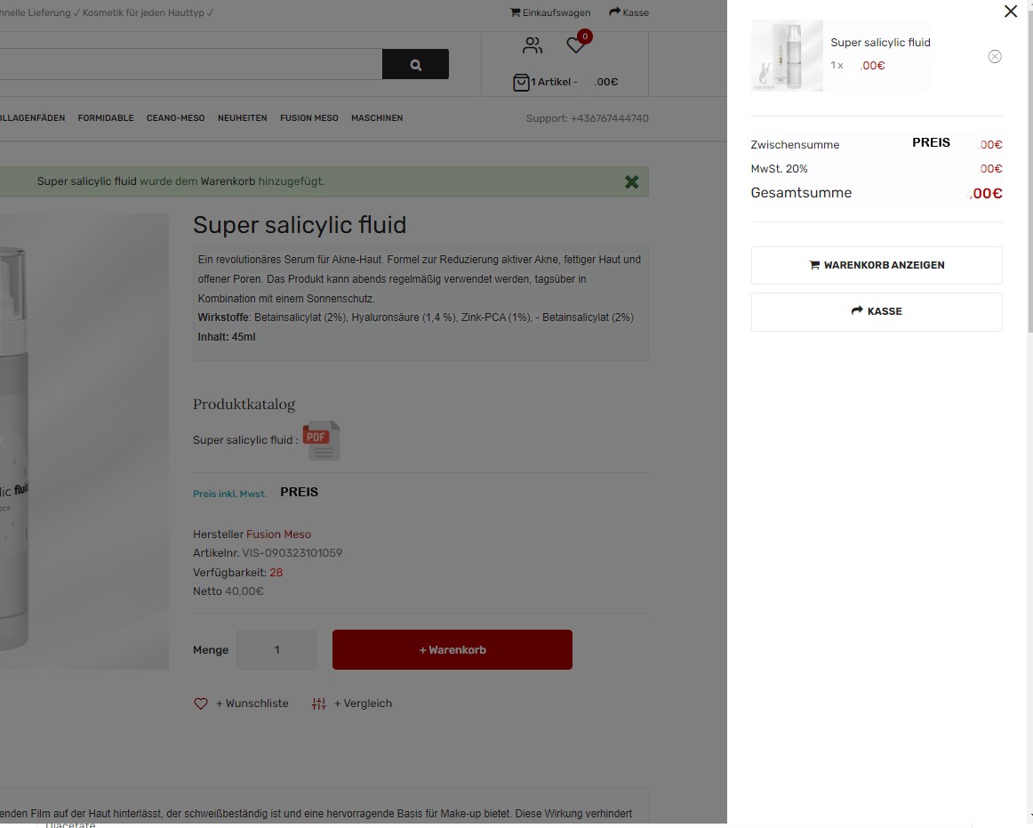 Das bedeutet, dass Sie nicht den ausreichenden Betrag von 100 € ohne Mehrwertsteuer eingezahlt haben. im Korb. Also, müssen sie die summe aktualisieren. Der Mindestbestellwert, den Sie in unserem Online-Shop bestellen können, beträgt 100 € ohne Mehrwertsteuer.