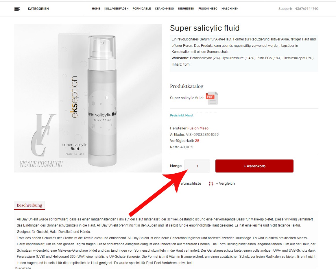 Wenn Sie das gewünschte Produkt ausgewählt haben, geben Sie einfach die Menge manuell ein und legen Sie es in den Warenkorb.